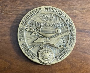 American Legion Award given each year to one boy and one girl in the sixth grade of each local Elementary school for “Courage, Honor, Leadership, Patriotism, Scholarship and Service.”